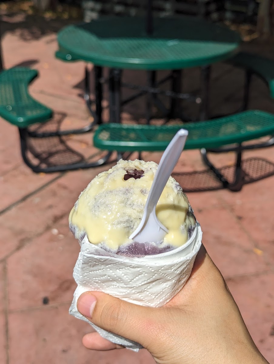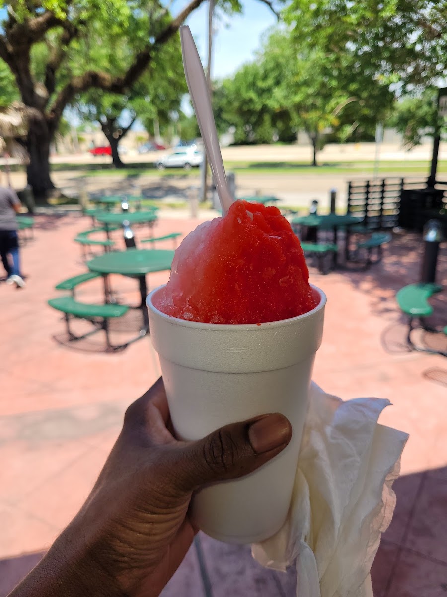 Classic ikes in city park. Good flavors at extremely cheap prices. Plenty of seating outdoors to chill and hang out. Gets really messy! We like the tigers blood but make sure to add condensed milk